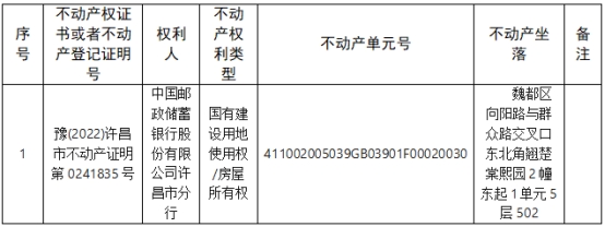 不动产权证书/登记证明作废公告(中国邮政储蓄银行股份有限公司许昌市分行)