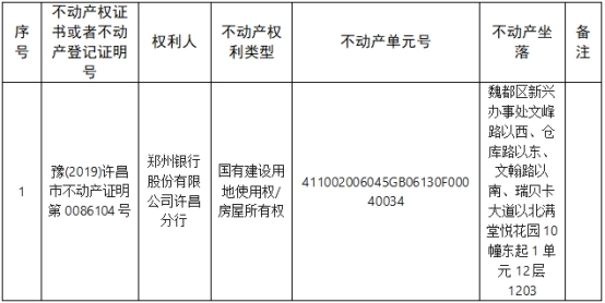 不动产权证书/登记证明作废公告(郑州银行股份有限公司许昌分行)