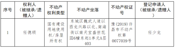 根据《不动产登记暂行条例实施细则》第十四条的规定,经初步查验,不动产登记机构拟对下列不动产权利办理不动产继承登记。根据《不动产登记暂行条例实施细则》第十七条的规定,现予公告。如有异议,请自本公告之日起15个工作日内,将异议书面材料送达不动产登记机构。逾期无人提出异议或者异议不成立的,不动产登记机构将予以登记。