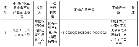 不动产权证书/登记证明作废公告(中国银行股份有限公司许昌新许支行)