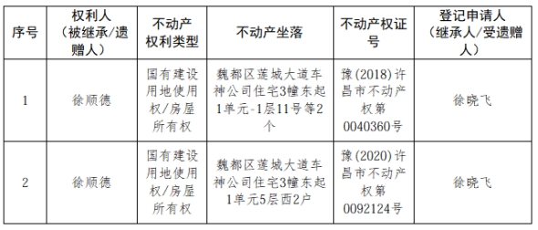 根据《不动产登记暂行条例实施细则》第十四条的规定,经初步查验,不动产登记机构拟对下列不动产权利办理不动产继承登记。根据《不动产登记暂行条例实施细则》第十七条的规定,现予公告。如有异议,请自本公告之日起15个工作日内,将异议书面材料送达不动产登记机构。逾期无人提出异议或者异议不成立的,不动产登记机构将予以登记。