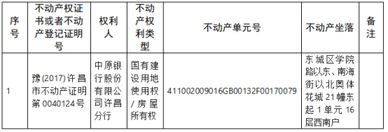 不动产权证书/登记证明作废公告(中原银行股份有限公司许昌分行)