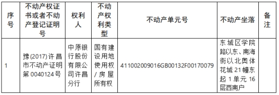 不动产权证书/登记证明作废公告(中原银行股份有限公司许昌分行)