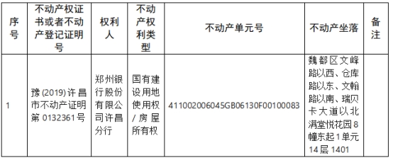 不动产权证书/登记证明作废公告(郑州银行股份有限公司许昌分行)