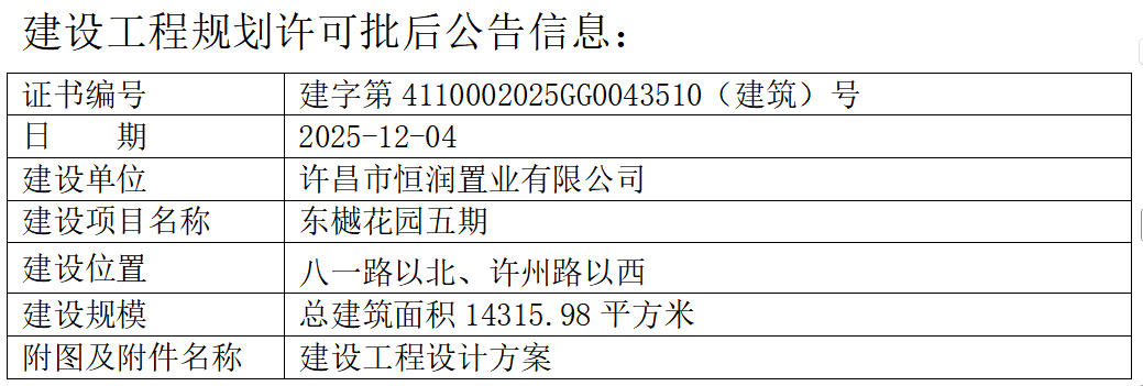 东樾花园五期建设工程规划许可批后公告